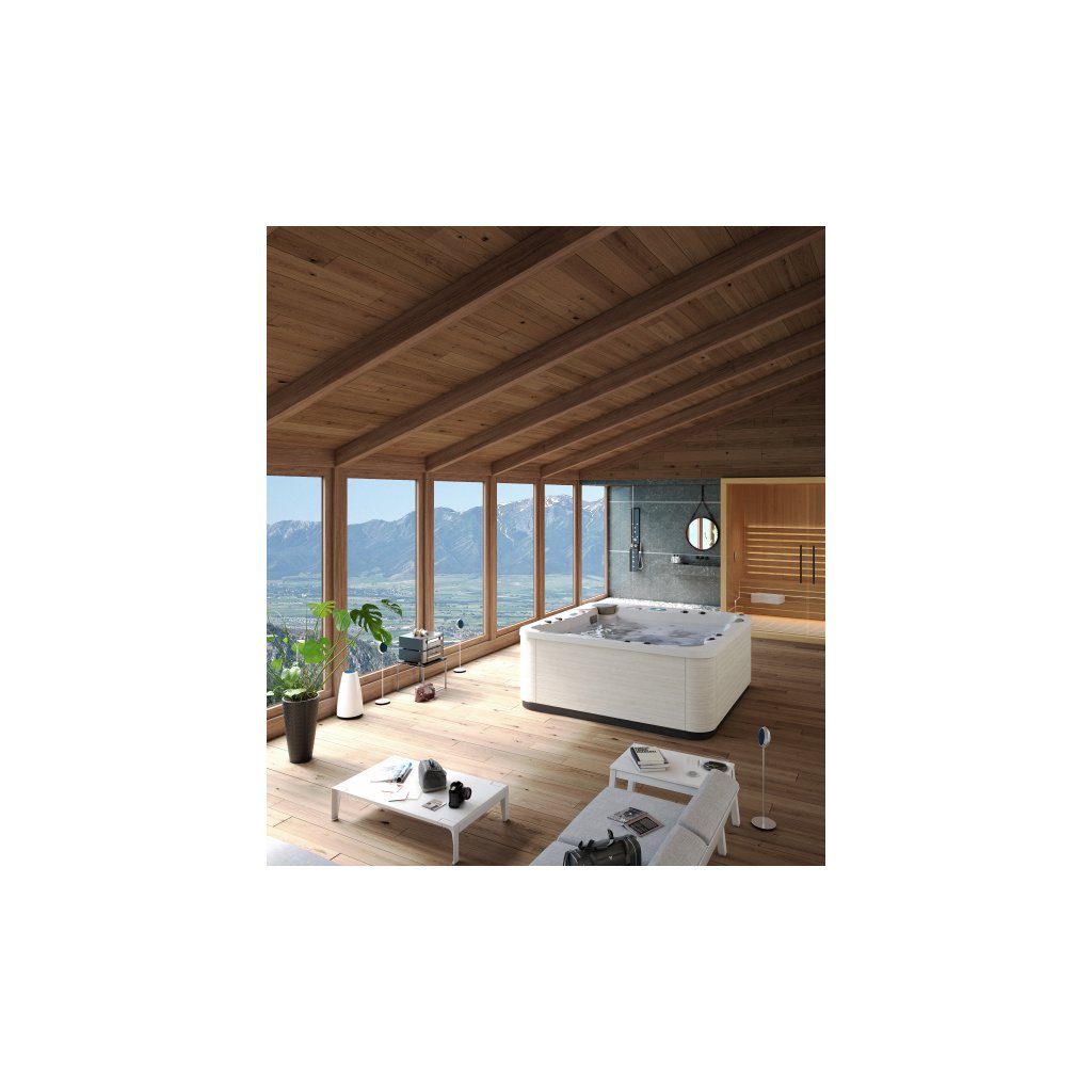 Vířivá vana model Velvet poskytuje tu nejlepší hydromasáž. Model Velvet je určen zejména pro vysoké lidi, a to především díky své velikosti. Jedná se o vířivku pro 5 osob a je navržena tak, aby maximalizovala prostor a vytěžila maximum. Ve vířivce Velvet si můžete užít relaxační nebo terapeutickou masáž na dvou lehátkách a třech sedátkách. Koncept Velvet je určen pro zákazníky, kteří hledají účinnou masáž bez omezení prostoru společně s dokonalým designem. Vhodná do vnitřních prostor. Za zmínku také stojí LED reflektor s měnícími se barvami, který vám umožní měnit prostředí podle vašeho vkusu a užívat si výhod chromoterapie.