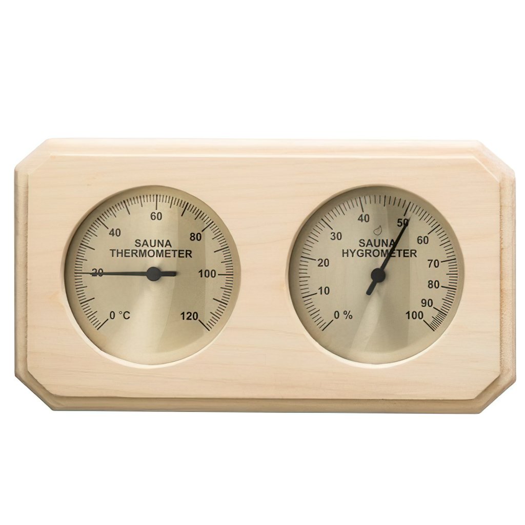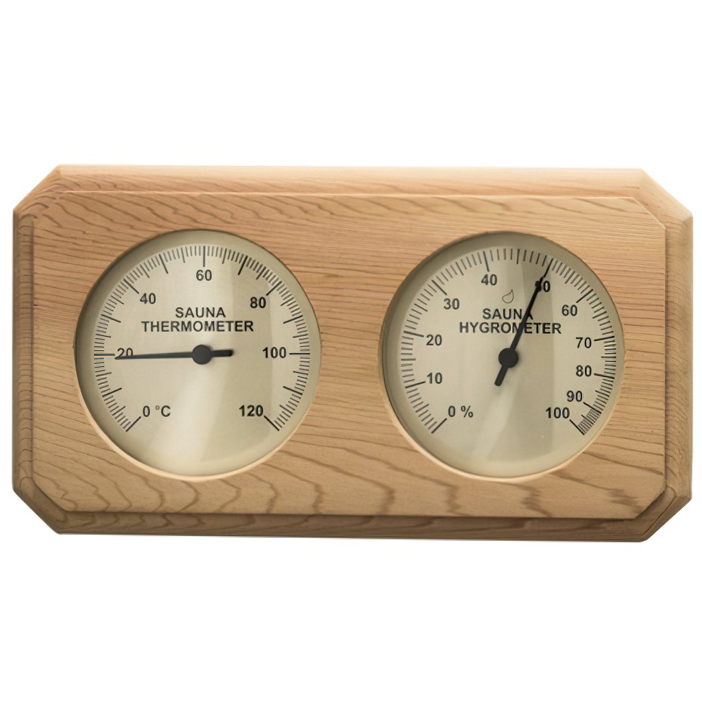 Teploměr / vlhkoměr má masivní dřevěný rámeček. Kombinuje promyšlený design s přesným měřením saunového klimatu. Teplota 0 až 120° C Vlhkost 0 až 100%.