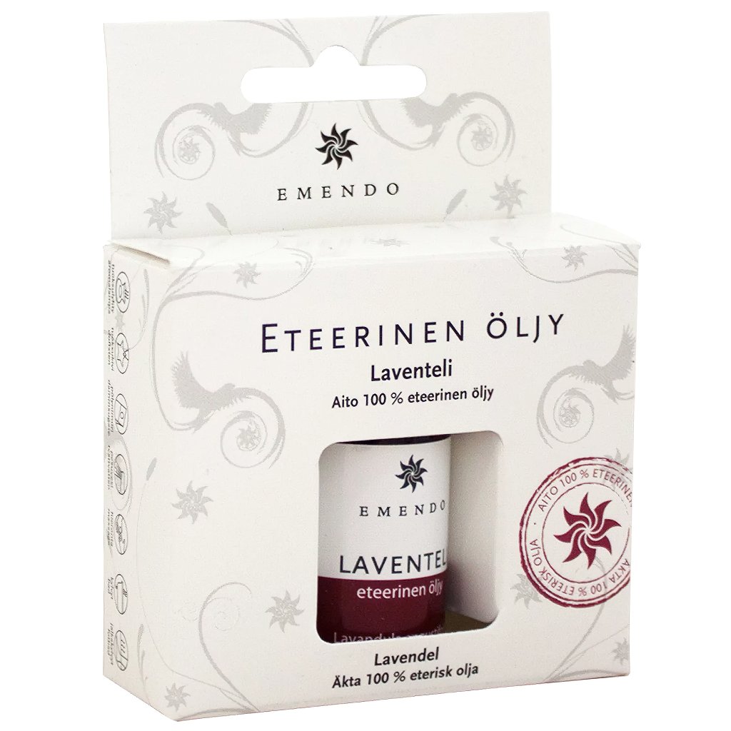 Pravý 100% esenciální olej z levandule (Lavandula angustifolia) v 10ml balení. Víceúčelový olej z levandule uvolňuje, uklidňuje a vyrovnává mysl a pomáhá vám snadněji usnout. Pravé 100% esenciální oleje Emendo jsou vhodné pro aromaterapii a olejové lampy. Esence do sauny Levandule je neředěný parfém bez přídavku vody. Tato vůně vnese čerstvost do Vaší sauny a znásobí požitek vaši relaxace. S esencemi začínejte opatrně a používejte je zředěné vodou. Finský originál od firmy Emendo.