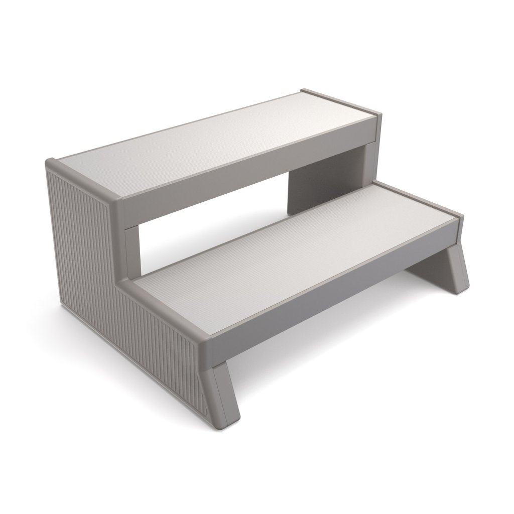 HIGHLIFE Step jsou moderní, pevné plastové protiskluzové schůdky vyrobené technikou vstřikování plastu. Jsou odolné proti ÚV záření s dlouhou stálostí barev. Schody jsou vybaveny protiskluzovými nášlapy pro Vaši bezpečnost. Tento produkt byl speciálně vytvořen tak, aby odpovídal modelům vířivých van Highlife®. Kvalitní pevná čelní konstrukce. Nosnost schodů až 300 kg. K dispozici jsou ve dvou barevných variantách, které odpovídají většině vířivým vanám. Pevné plastové protiskluzové schůdky. Výhody: