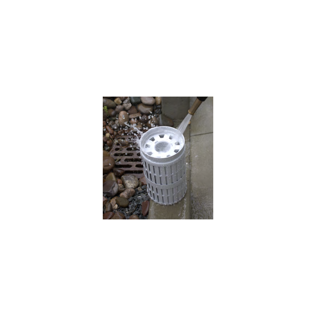 Filtr se čistí jednoduše opláchnutím zahradní hadicí (nedoporučuje se použití vysokotlakého čističe). Pro důkladnější vyčištění lze filtr proplachovat ve vodě nebo jej nechat odmočit v čisticím roztoku. Pravidelná údržba (ccca 1x měsíčně) prodlužuje jeho životnost.