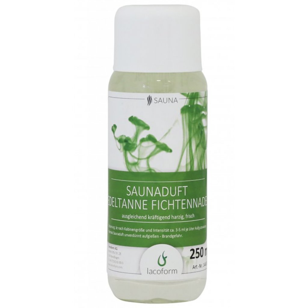 Silná, uvolňující a nezapomenutelná jehličnatá vůně s lehce sladkým až ovocným nádechem lesních plodů pro dobrou psychickou pohodu a relaxaci. Extrakty z jedlového jehličí mají antidepresivní účinky, povzbuzují, zvyšují koncentraci a upevňují vnitřní rovnováhu. Mají detoxikační, prokrvující a antiseptické účinky. Vysoce koncentrovaná a čistá saunová esence Jedlové jehličí od Lacoform umocní váš zážitek ze saunování o silné aromaterapeutické zážitky. Tato saunová vonná esence se dávkuje v soukromých saunách optimálně pomocí dávkovacího vědra, kdy do každého litru vody nakapeme cca 3 - 5 ml esence. Roztokem pak opatrně poléváme saunové kameny. Ve veřejných provozech doporučujeme instalaci dávkovače či odpařovacích mističek umístěných nad saunovými kamny.