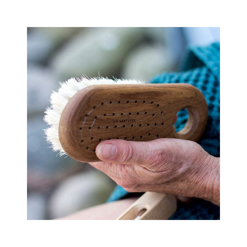 • Kartáče Iris Hantverk vám vydrží roky a nepotřebují ani zvláštní údržbu. V případě znečištění je properte v teplé vodě s čistícím prostředkem a čas od času ošetřete dřevo olejem.