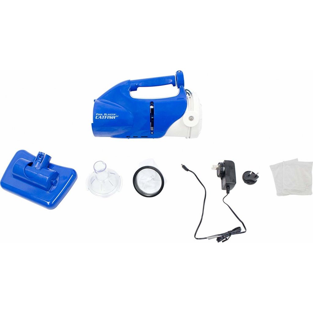 Pool Blaster Catfish čistí všechny druhy bazénů, lázní, dětských bazénů, bazénů nafukovacích typů. Silné průtokové čerpadlo a univerzálně použitelný filtrační sáček s lapačem nečistot odstraňuje listy, písek a řasy. Vysavač můžete použít buď ručně nebo připevnit ke standardní teleskopické tyči. Ruční vysavač je lehký, uživatelsky přívětivý a velmi cenově dostupný. Dodává se sáčkem Extreme pro zachycení velkých a jemných nečistot. Vakuovou hlavou lze vyčistit velké plochy bazénu, nebo lze hlavu vyjmout, což činí jednotku výkonným bodovým čističem, který dokáže hladce čistit rohy a trhliny. S vysavačem můžete rychle a efektivně vyčistit malé části svého bazénu. Ruční vysavač je napájen lithiovou dobíjecí baterií, která dobije baterii pouze za čtyři hodiny, což umožňuje bezšňůrovou a bezhlučnou práci po dobu až 45 minut nepřetržitého používání. Technologie Max Cone Technology od firmy Catfish vysává štěrk, nečistoty, listy a další nečistoty do snadno vyprázdnitelného, opakovaně použitelného filtračního sáčku.